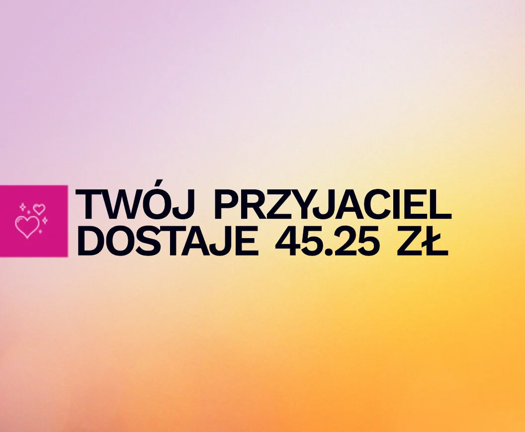 Twój znajomy otrzyma 45.25 zł kredytu za każde udane polecenie, którego dokona. Powiadomimy ich e-mailem, gdy będzie gotowy do wydania!
